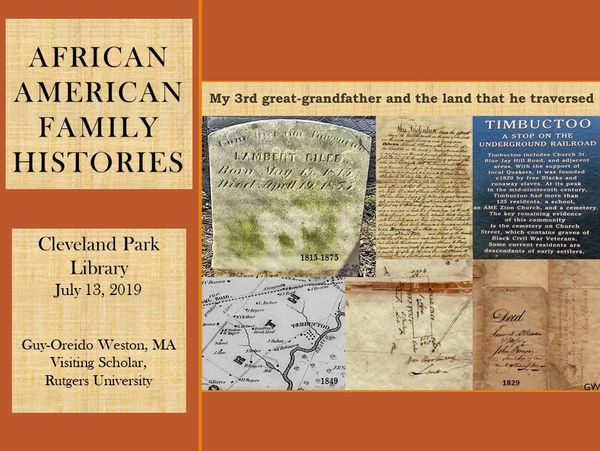 July 23, 2019. Slides from a presentation focusing on antebellum free People of Color in New Jersey and the District of Columbia. Also included is discussion on the basics of building a Family Tree.